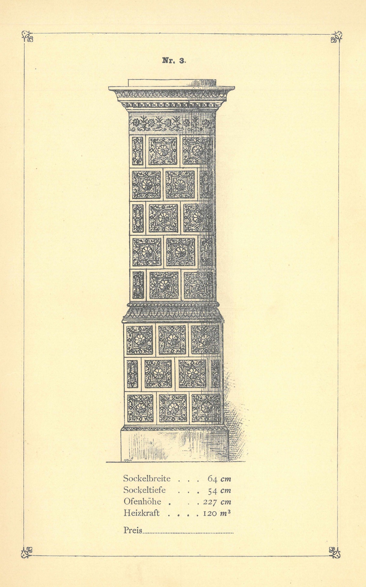 Nabízí se proto otázka, zda ke vzorníku existoval ještě nabídkový list či prospekt, který podrobně informoval potenciální zákazníky o tom, v jakých barvách byla kamna nabízena.